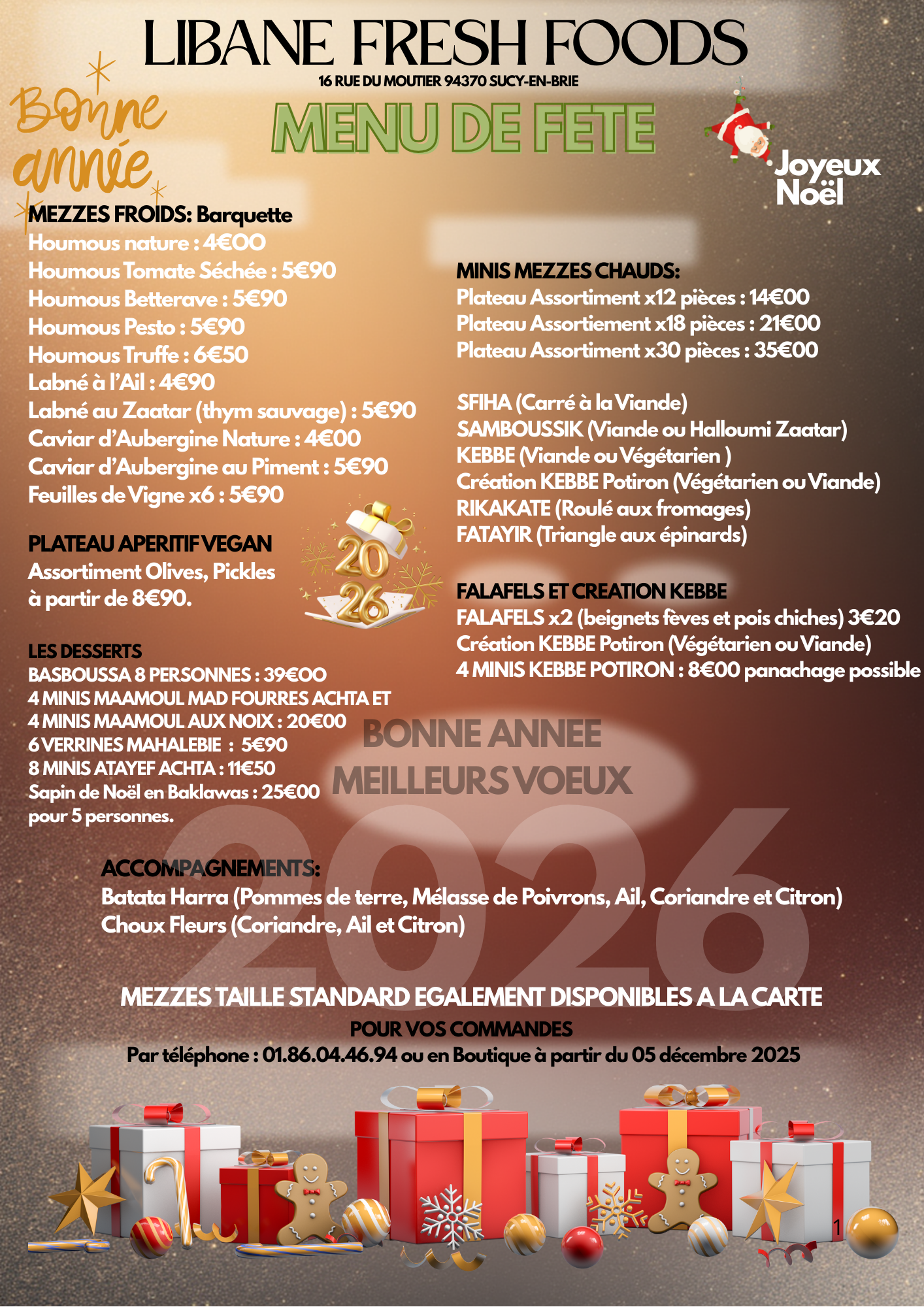 Bienvenu au restaurant LIBANE FRESH FOODS , Sucy-en-Brie. Nous avons hâte de vous accueillir pour vous inviter à profiter de notre cuisine libanaise "authentique" fait maison. Une offre semi gastronomique savoureuse, une cuisine traditionnelle et emblématique du pays du cèdre. Venez entre amis ou en famille pour déguster nos délicieux Mézzés. Chez Libane Fresh Foods vous pourrez vous régaler de nos délicieuses pâtisseries, desserts et baklawas.